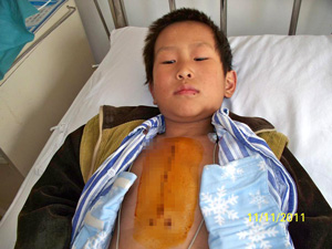 当我问小志祥上几年的时候,爷爷和孩子都哭了起来。因为孩子有病,孩子上了几天学,学校就把孩子赶了回来。当我告诉小志祥他以后病好就可以去上学了,孩子高兴的笑了起来。